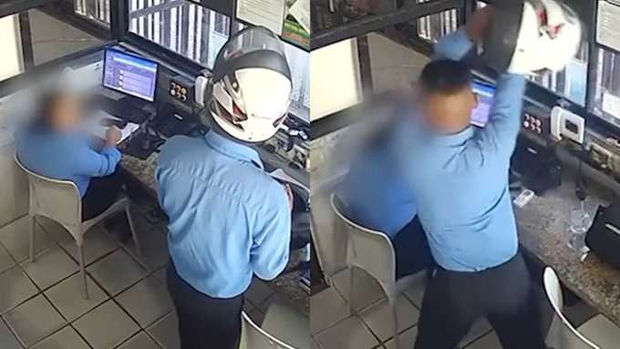 Contrariado, o agressor — que ainda não teve o nome divulgado — pega o capacete e começa a desferir vários golpes contra a cabeça da mulher, que tenta se proteger com as mãos. Apesar da violência, ela não sofreu ferimentos graves aparentes.