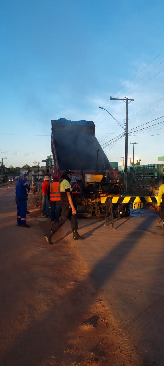 Durante a realização do trabalho de pavimentação, agentes da Empresa Municipal de Transportes Urbanos (EMTU), farão ordenamento do trânsito na avenida Amazonino Mendes, que já está sinalizada com cones.