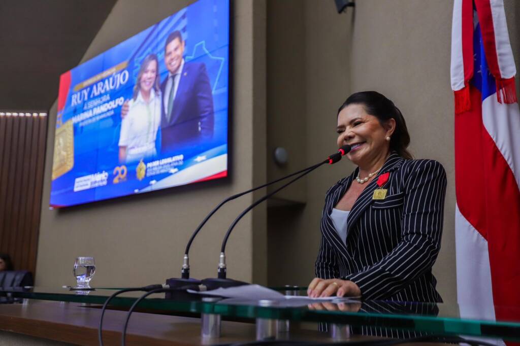 Prefeita Marina Pandolfo recebe medalha Ruy Araújo, a mais alta honraria concedida pela Aleam