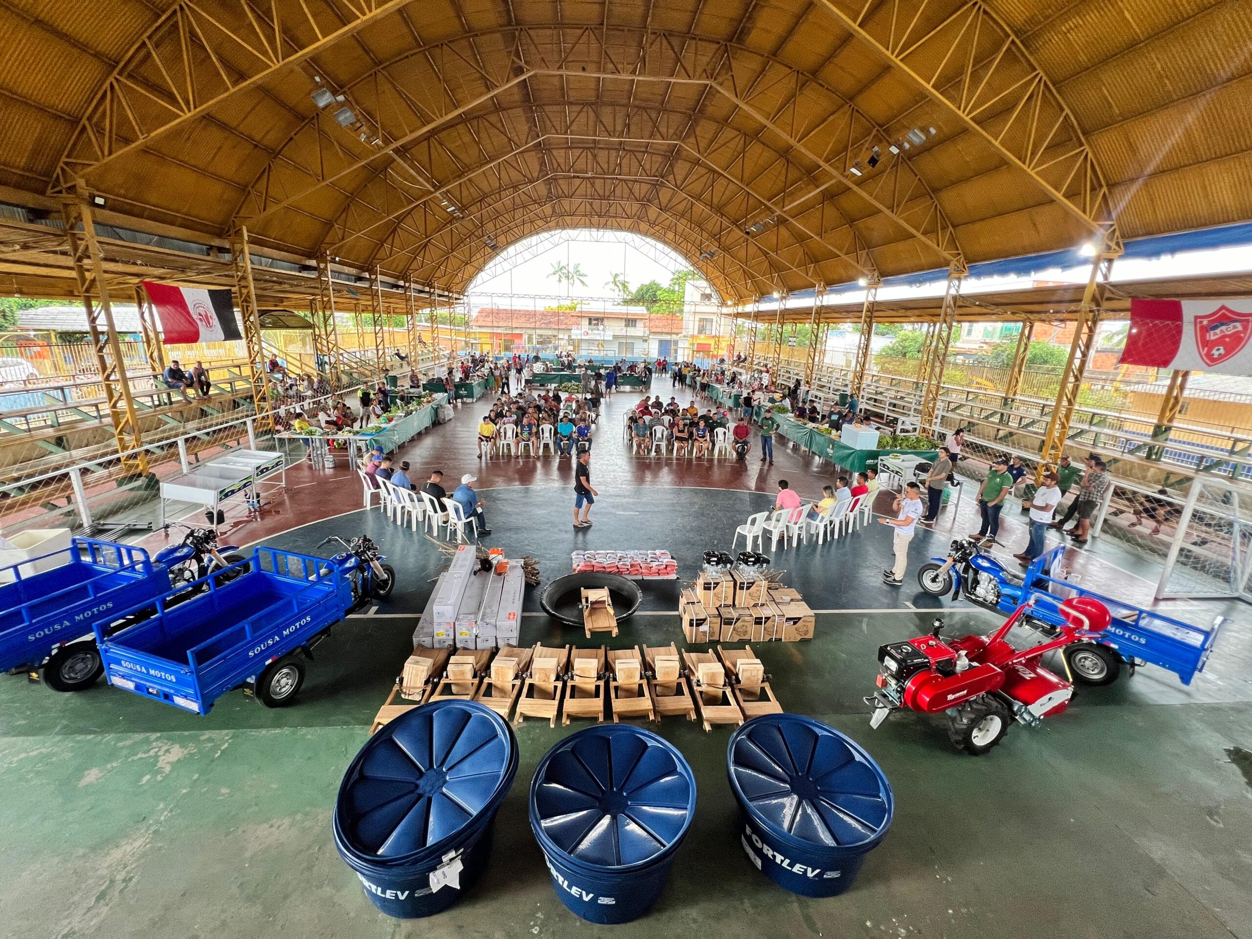 Além das vendas de produtos oriundos da agricultura, a 1º edição da feira de 2024 também contou com as entregas de implementos agrícolas das Associações de Produção Rural contempladas pelo Fundo de Promoção Social (FPS).