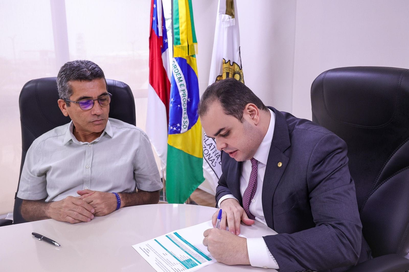A assinatura do repasse ocorreu nesta quarta-feira (15/10), com a presença do prefeito Lúcio Flávio (PSD) e de vereadores de Manicoré.