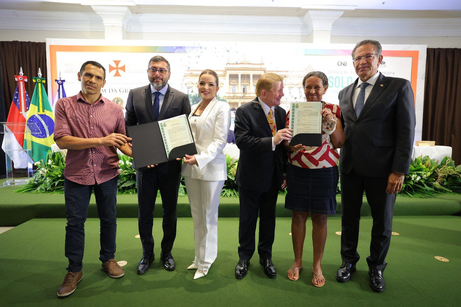 Além do balanço das ações, o encerramento da Semana Solo Seguro foi marcado pela primeira outorga da Medalha da Ordem da Grã-Cruz, concedida pelo TJAM. A honraria foi entregue ao ministro Mauro Campbell Marques, corregedor nacional de Justiça, e a ex-corregedores do Amazonas que contribuíram para o fortalecimento da cidadania.